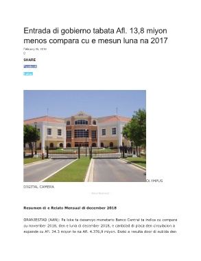 ORANJESTAD (AAN): Pa loke ta desaroyo monetario Banco Central ta indica cu compara