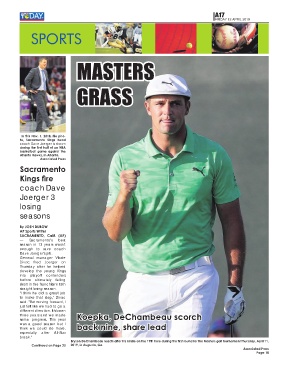 Bryson DeChambeau reacts after his birdie on the 17th hole during the first round for the Masters golf tournament Thursday, April 11,