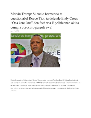 acusacion serio contra Parlamentario di MEP Endy Croes. E ta asombra di tuma nota di e silencio hermetico cu