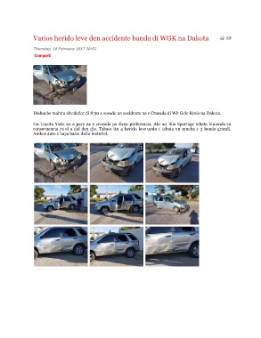 Diahuebs mainta alrededor di 8:30 a sosode un accidente na e Crusada di Wit Gele Kruis na Dakota.