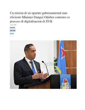 Cu mision di un aparato gubernamental mas eficiente Minister Dangui Oduber contento cu proceso di digitalisacion di SVB July 2, 2019 SHARE Facebook Twitter