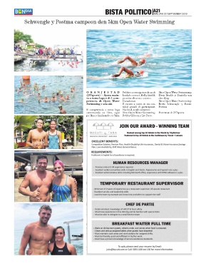 O R A N J E S T A D Publico a reuni patras di cas di 3km Open Water Swimming: