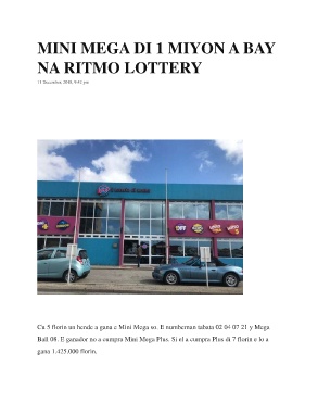 Cu 5 florin un hende a gana e Mini Mega so. E numbernan tabata 02 04 07 21 y Mega