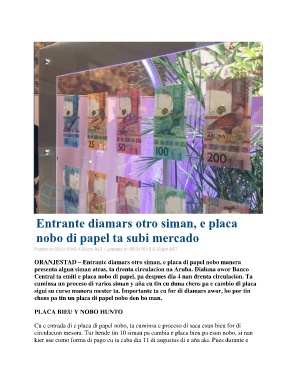 presenta algun siman atras, ta drenta circulacion na Aruba. Dialuna awor Banco
