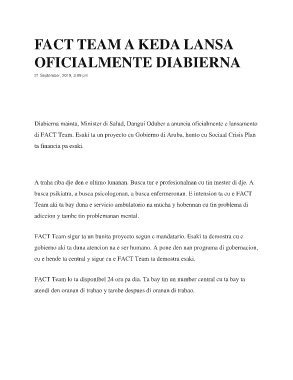 FACT Team lo ta disponibel 24 ora pa dia. Ta bay tin un number central cu ta bay ta