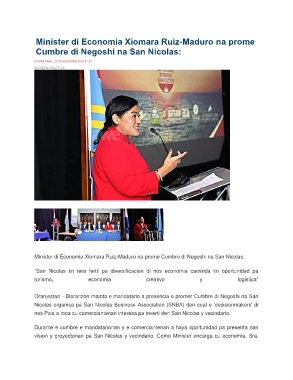 Minister di Economia Xiomara Ruiz-Maduro na prome Cumbre di Negoshi na San Nicolas: