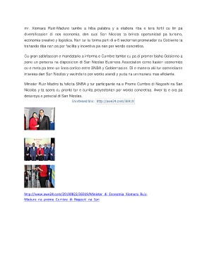 Minister Ruiz-Madiro ta felicita SNBA y tur participante na e Prome Cumbre di Negoshi na San