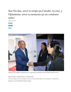 Na promer lugar mi ta desea di gradici directiva di San Nicolas Business Association pa e invitacion pa