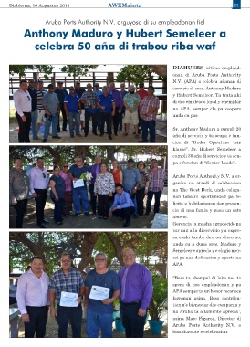 Aruba Ports Authority N.V. orguyoso di su empleadonan fiel