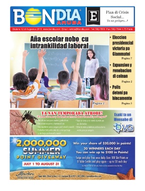 Dialuna 12 di Augustus 2019 www.bondia.com Email: noticia@bondia.com Tel: 582-7800 Fax: 582-7044 1,75 Florin