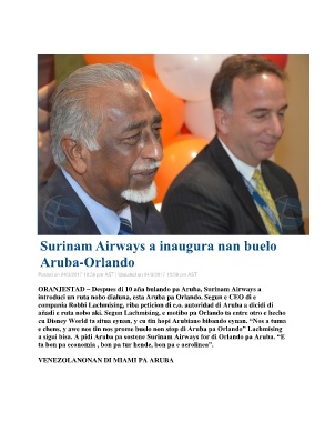 a sigui bisa. A pidi Aruba pa sostene Surinam Airways for di Orlando pa Aruba. “E