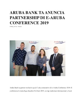 Aruba Bank ta partner exclusivo pa di 2 aña consecutivo di e-Aruba Conference 2019. E