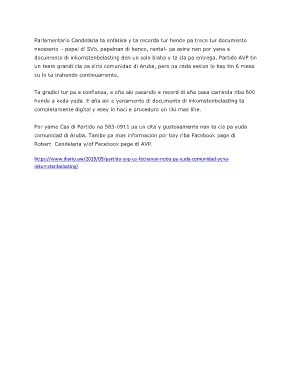documento di inkomstenbelasting den un solo biaha y ta cla pa entrega. Partido AVP tin