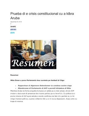 Mientras Aruba na forma angustia ta busca un salida pa e crisis actual, atrobe AVP