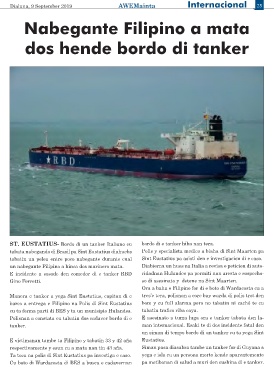 ST. EUSTATIUS- Bordo di un tanker Italiano cu bordo di e tanker hiba nan tera.