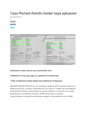di Parlamento di Aruba. Informantenan ta mustra DIARIO cu e acusacion cu a wordo