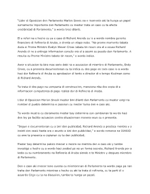 keda cu su nombramento na Refineria di Aruba siendo e ta Ministro y despues miembro