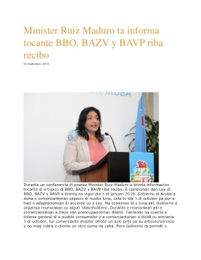 tocante di e topico di BBO, BAZV y BAVP riba recibo. E cambionan den Ley di