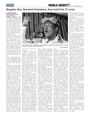 vember 2017, Mugabe was events and international power through violence sa, said he is “mourning line with the West, and he