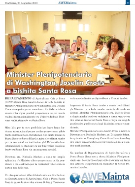 Minister Plenipotenciario di Washington, sra. Joselin Logronan di Santa Rosa tambe a wordo treci dilanti
