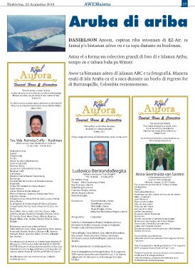 Condolencia lo tuma lugar diabierna 23 di Augustus na 2019 na Aurora Funeral Home di 9 pa 11 am.