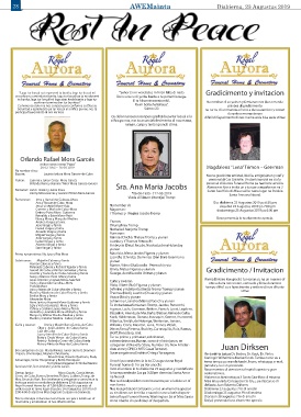 Orlando René y Jeanine “Nina” Mora Garcés–Everon Sra. Ana Maria Jacobs personal di Aurora Funeral Home pa nan bon servicio.