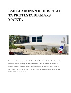 cu mayan diamars mainta pa 9:00am lo tin un walk-out. Trahadonan di Hospital lo