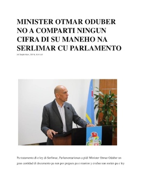 Pa tratamento di e ley di Serlimar, Parlamentarionan a pidi Minister Otmar Oduber un