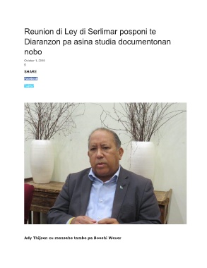 Reunion di Ley di Serlimar posponi te Diaranzon pa asina studia documentonan nobo October 1, 2019 0 SHARE Facebook Twitter Ady Thijsen cu mensahe tambe pa Booshi Wever