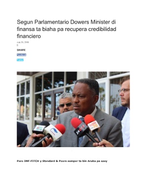 Segun Parlamentario Dowers Minister di finansa ta biaha pa recupera credibilidad financiero July 31, 2019 0 SHARE Facebook Twitter - Pero IMF-FITCH y Standard & Poors semper ta bin Aruba pa esey