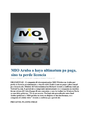Aruba (gobierno) y MIO pa loke ta trata un disputa cu tin den feesnan, cu e