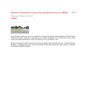 Servicio Veterinario lo habri bek pa duna servicio di matansa dia 28 di februari 2017. Ta pidi criadonan