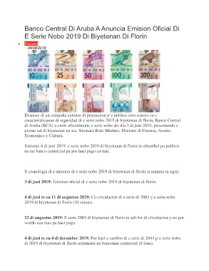 di Aruba (BCA) a emiti oficialmente e serie nobo aki dia 3 di juni 2019, presentando e
