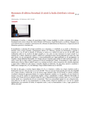 manera cu e ley di Laft ta stipula. E cifranan ta indica cu e deficit di 2016 ta na 2% di GDP, pues