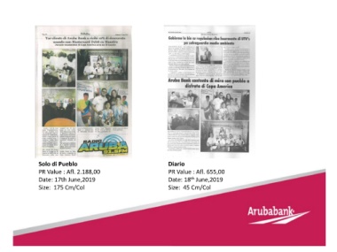 Solo di Pueblo Diario PR Value : Afl. 2.188,00 PR Value : Afl. 655,00 th Date: 17th June,2019 Date: 18 June,2019 Size: 175 Cm/Col Size: 45 Cm/Col