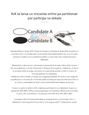 A base di e punto di salida cu KvK a stipula pa participacion na e debatenan, ta pone cu