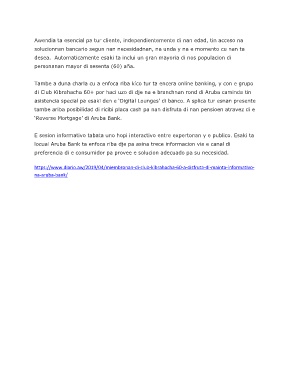 locual Aruba Bank ta enfoca riba dje pa asina trece informacion via e canal di