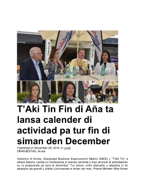 Gobierno di Aruba, Oranjestad Business Improvement District (OBID) y “T’Aki Tin” a