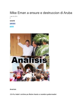 Mike Eman a ensure e destruccion di Aruba June 19, 2019 0 SHARE Facebook Twitter - Analisis 12-8 a habri cortina pa Reino hasta a nombra gobernador
