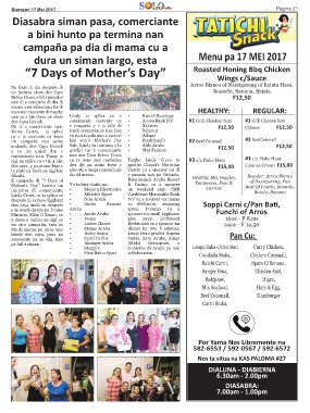 dura un siman largo, esta Menu pa 17 MEI 2017