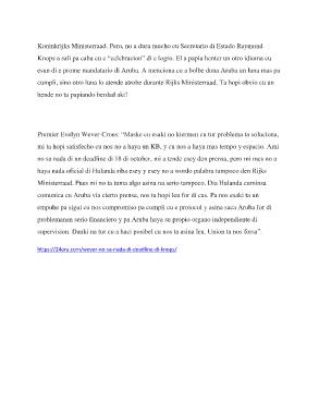 esun di e prome mandatario di Aruba. A menciona cu a bolbe duna Aruba un luna mas pa