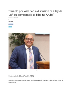 ORANJESTAD (AAN): Pueblo por a constata cu bao di Gabinete Evelyn Wever Croes tin