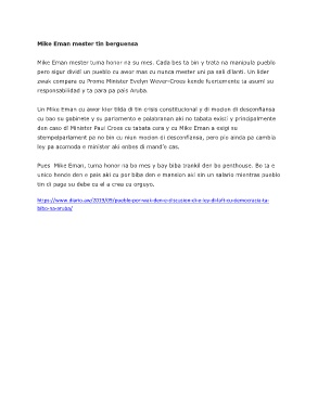 Un Mike Eman cu awor kier tilda di tin crisis constitucional y di mocion di desconfiansa
