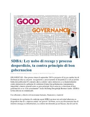 gobernacion cu ta viola actualmente? Asina Stichting Deugdelijk Bestuur Aruba (SDBA)