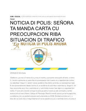 HOME / POLICIAL / NOTICIA DI POLIS: Señora ta manda carta cu preocupacion riba situacion di trafico