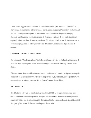 Den e nader rapport riba e conseho di “Raad van advies” por tuma nota cu ta indica