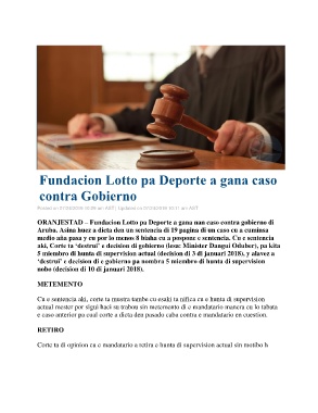 ORANJESTAD – Fundacion Lotto pa Deporte a gana nan caso contra gobierno di