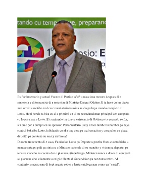 Ex Parlamentario y actual Vocero di Partido AVP a reacciona mesora despues di e