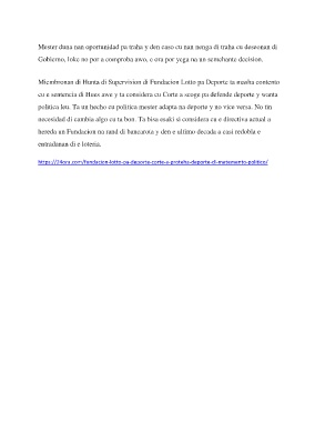 cu e sentencia di Hues awe y ta considera cu Corte a scoge pa defende deporte y wanta