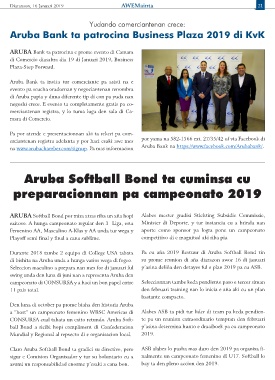 Durante 2018 tambe 2 equipo di College USA tabata Pa cu aña 2019 Bestuur di Aruba Softball Bond tin